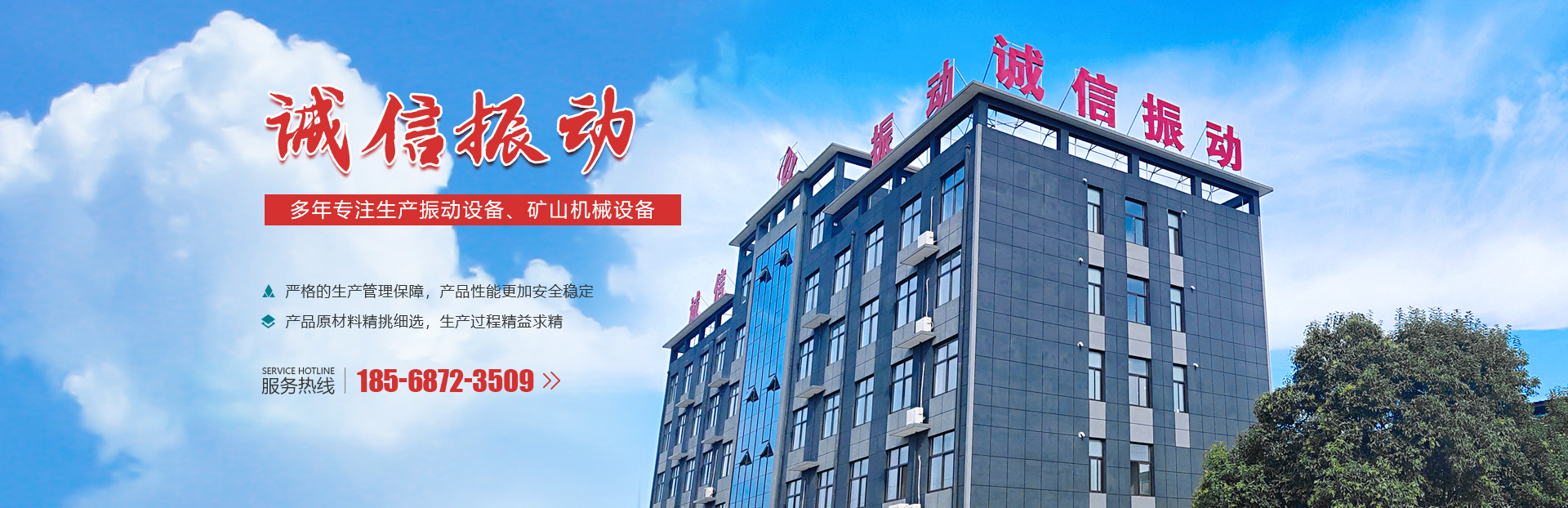 新鄉(xiāng)市誠信振動設備有限公司是國內生產振動設備及礦山機械設備的生產廠家,公司集研發(fā)、 設計、生產、 銷售為一體化,注冊資金5800萬元,職工500余人,技術人員80余人。公司位于河南省新鄉(xiāng)市小冀經濟開發(fā)區(qū),占地8萬平方米,建筑面積6.8萬平方米,并通過了ISO質量體系認證。公司的主要產品有系列振動電機、振動篩、多元環(huán)保篩、彈性環(huán)保篩、振動給料機、振動輸送機、破碎機、皮帶機、斗式提升機、鏈斗輸...... <了解更多>
